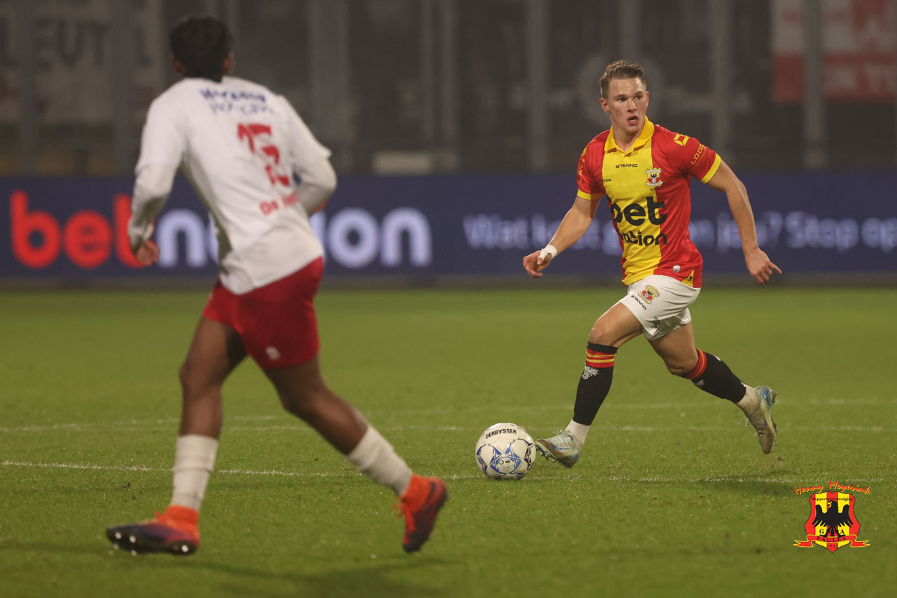 Terug naar de wedstrijd van gisteren, waar een laag tempo de eerste helft domineerde. GA Eagles had logischerwijs het meeste balbezit, maar kwam maar niet tot scoren tegen de stugge amateurs uit Noordwijk. Als de grote kansen in het begin van het duel waren afgerond, zou de avond er veel eenvoudiger op zijn geworden. Maar doelman Antonioli kon redden op inzetten van dichtbij, Breum en Linthorst verzuimden een snelle openingstreffer te maken.