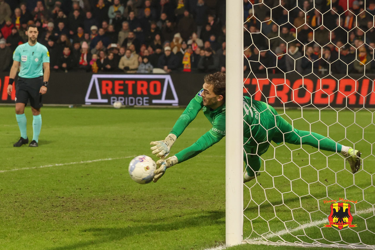 Daarin gebeurde traditiegetrouw weinig. De doelman van Heracles, De Keyzer, moest eenmaal met zijn vuisten redding brengen, en na 120 slopende minuten moest een strafschoppenserie de apotheose brengen. Terwijl de spelers zich verzamelden voor het nemen van de penalty’s, galmde “Jari, Jari!” vanaf de tribunes; een steunbetuiging aan penaltykiller pur sang: Jari De Busser. En terecht, want hoe hij het doet, doet hij het; de eerste pakte hij direct uit de onderhoek.