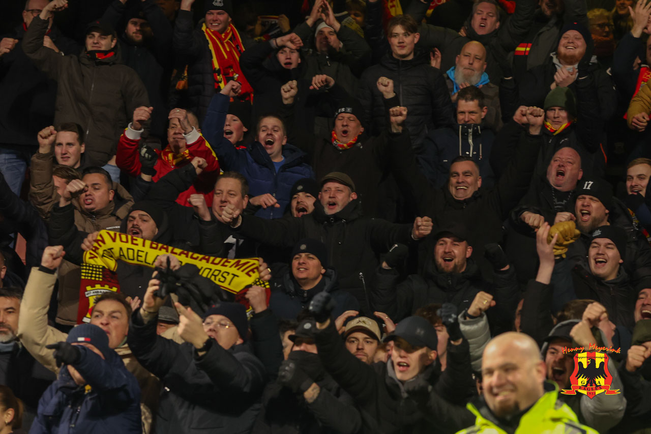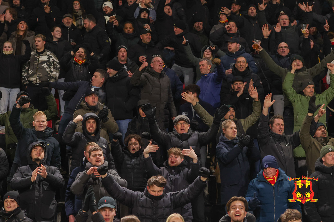 Het publiek ging er direct achter staan en ‘eiste’ meer van hun ploeg, en dat kregen ze ook. Een snel opgepakt offensief resulteerde al even snel in de gelijkmaker. Edvardsen leverde een perfecte voorzet af aan Milan Smit, die overtuigend binnenkopte: dé aftrap voor een heerlijk bekeravondje aan de Vetkampstraat. Tenminste, dat hoopte het uitverkochte stadion.