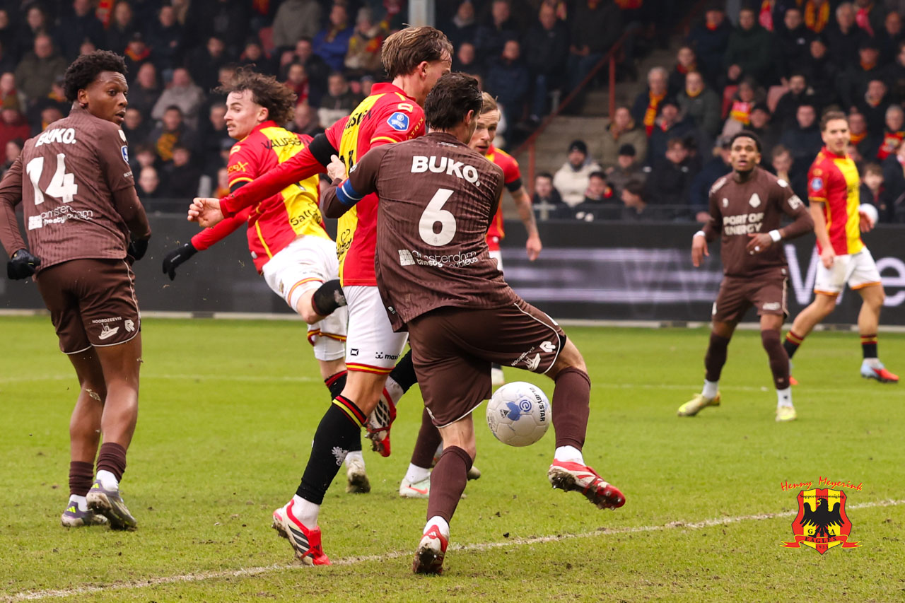 Met de moed der wanhoop zocht GA Eagles nog één keer het vijandelijke strafschopgebied. Daar maakte diezelfde Hardeveld overduidelijk hands, maar scheidsrechter Higler weigerde te fluiten en de VAR greep niet in, bang voor weer een nieuwe blunder. Zo bleef het bij 1-1, een uitslag die niemand verdiend vond.