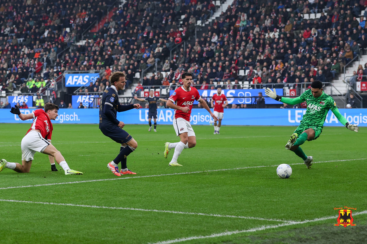 Die 1-1 leek stand te houden, ondanks dat het spel op en neer golfde. Toch zorgde een verkeerde keuze van Deijl voor een Alkmaarse voorsprong. De aanvoerder toucheerde een inzet die De Busser wilde oppakken, met als gevolg dat het speeltuig tergend langzaam aan de andere zijde van de sluitpost over de doellijn hobbelde.