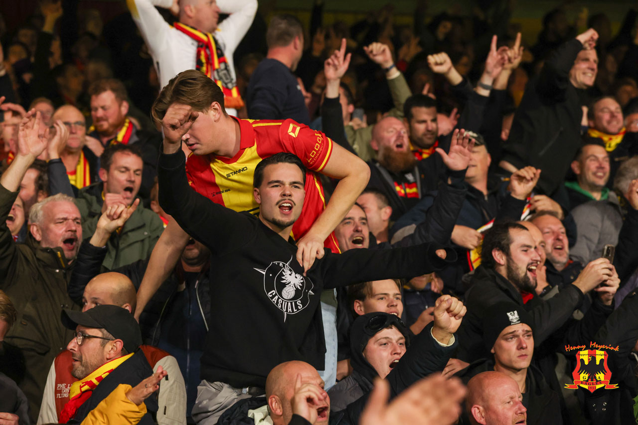 Het optimisme was groot na de thee — en terecht. Na een uur spelen verscheen aanvoerder Mats Deijl plots voor de keeper. Zijn schot zorgde voor pure extase op de tribunes: 2-1 voor Go Ahead Eagles. Wat volgde was een lang en zenuwslopend half uur.