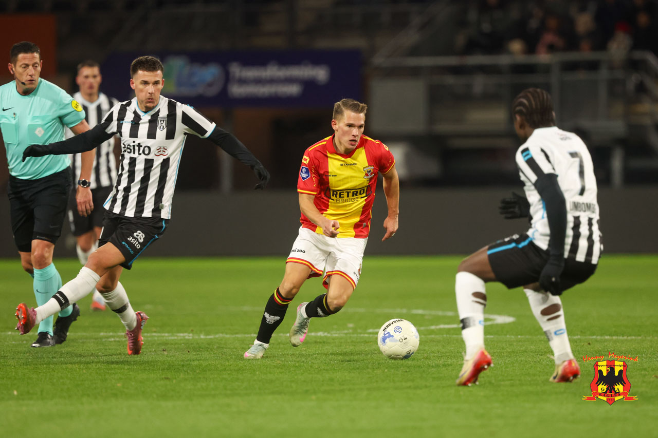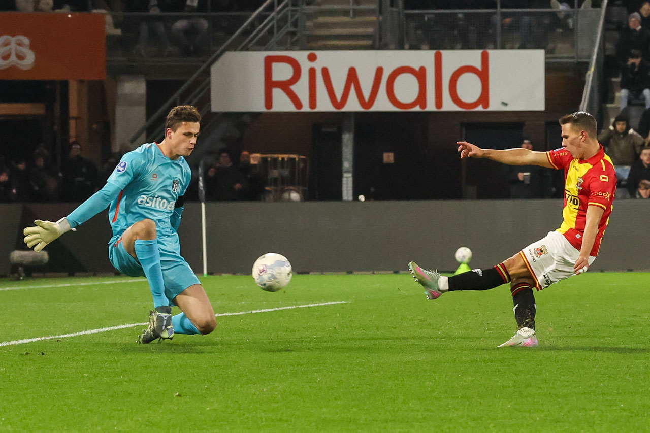 Go Ahead Eagles had daarna veel balbezit, maar creëerde niets. Na 34 minuten profiteerde Suray van een enorme fout van Hrustic, die zijn doelman wilde aanspelen. De Belg onderschepte en schoof beheerst de gelijkmaker binnen: 1-1.