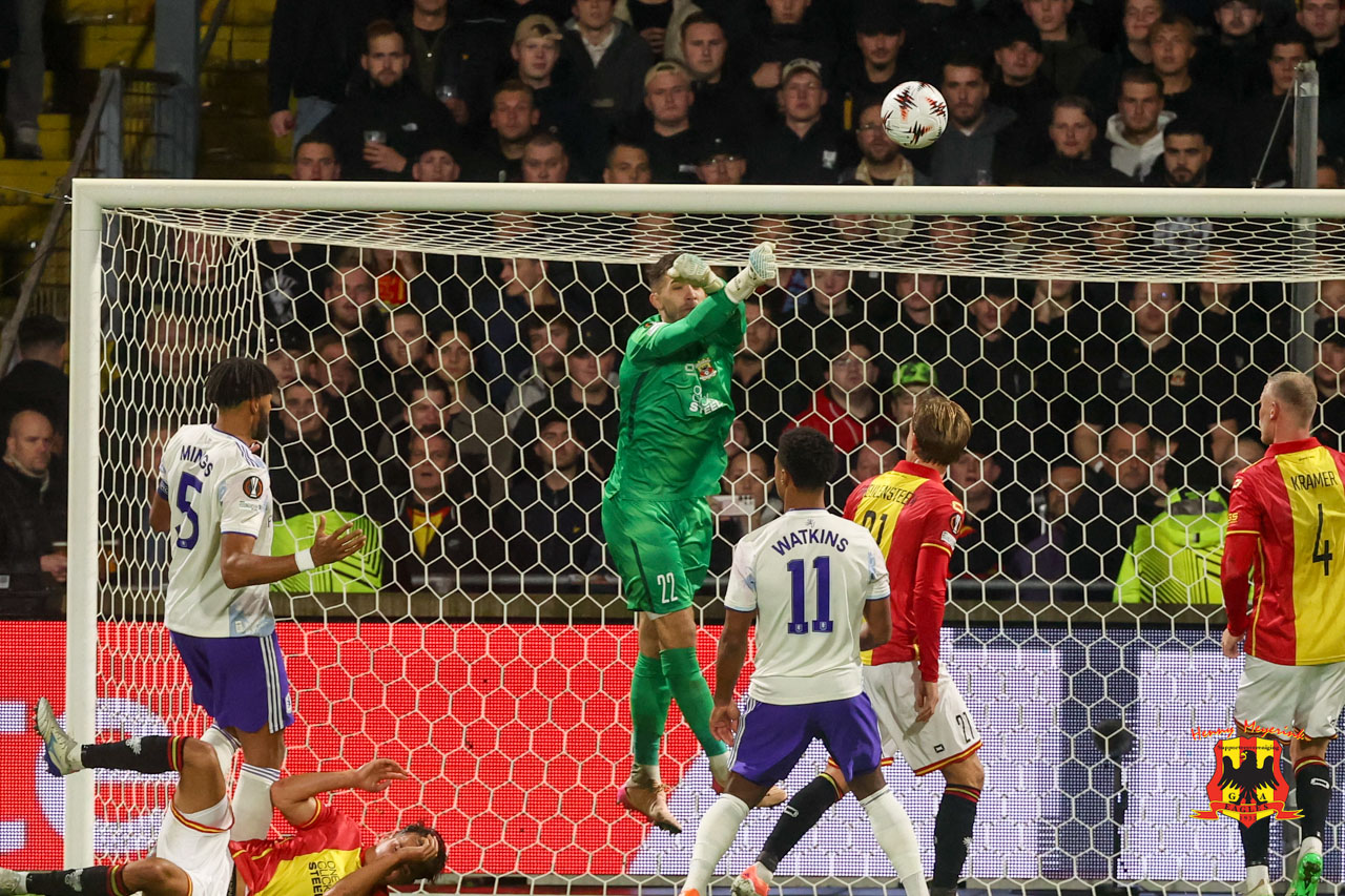 Dan de affiche waar iedere Eagles-fan én speler sinds de loting van 29 augustus van droomden: spelen tegen Aston Villa! De Engelse grootmacht van topcoach Unai Emery, de man met vier Europa League-titels op zijn naam. Een ploeg vol internationals, sterren en miljoenenbudgetten, twintig keer hoger dan dat van ons Kowet. Nederig keken we neer op de ploeg uit Birmingham, dat we tegen zo’n tegenstander überhaupt mochten spelen! De aanhang van The Villans daarentegen mopperden: slecht vijfhonderd mochten er mee naar Nederland, waar normaal duizenden de superploeg achterna reizen. En heel leuk, die Engelse stijl van die club met die rare naam, voor hun een formaliteit: even drie punten ophalen en door, business as usual op een regenachtige avond in Deventer. Maar dat pakte anders uit. Naubers vroege kans deed Villa schrikken, de Eagles trilden van spanning.