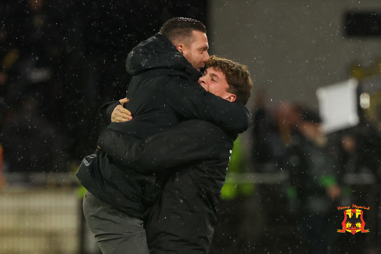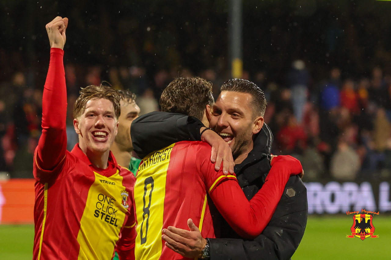 Wat volgde was een Go Ahead Eales dat vocht voor iedere grasspriet, zich perfect positioneerde, zich vastbeet in ieder duel en vrijwel geen kans meer toestond. Dan het eindsignaal: De Adelaarshorst brult, de aarde trilt onder het geweld, de Deventer kelen schreeuwen zich rauw, Go Ahead Eagles heeft zijn naam geschreven, in gouden letters, midden in de Europese nacht.