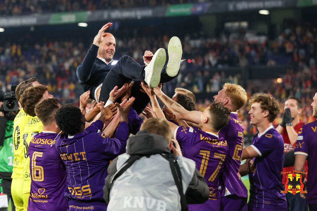 In de Kuip stond Go Ahead Eagles lang achter tegen AZ en iedereen dacht: mooi dat we dit toch mee hebben gemaakt. Maar het werd beter. Mats Deijl benutte ijskoud een strafschop en hoop gloeide weer op in duizenden rood-gele harten. Die 21ste april werd historisch toen Jari De Busser twee strafschoppen wist te keren en de cup mee naar Deventer ging. Wat maken we toch mee, dachten we allemaal. De eerste echte prijs in de historie van ons cluppie. Wekenlang liep ik met mijn hoofd in de wolken.
