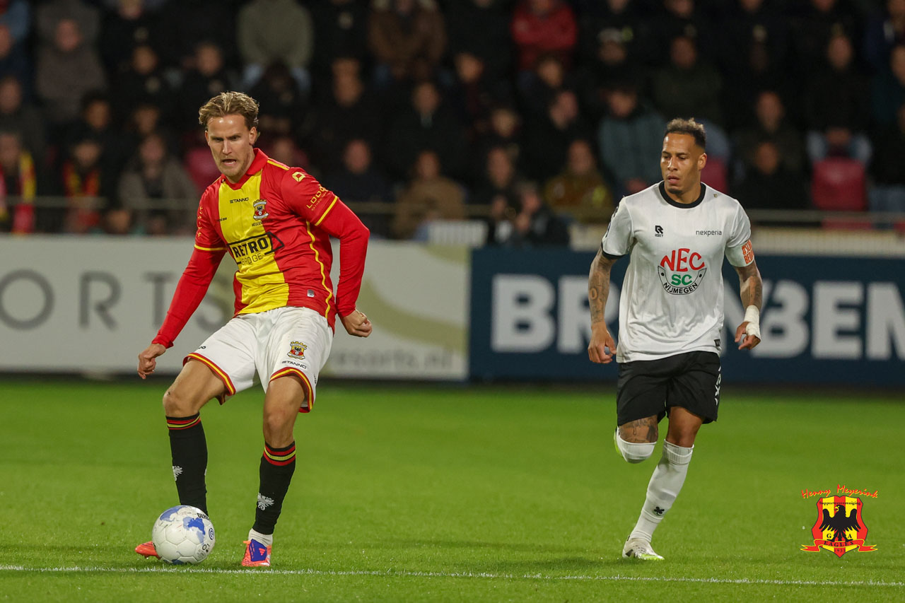 Met vijf man achterin leek NEC de overwinning over de streep te trekken, tot Sandler binnen een minuut tweemaal geel kreeg van de warrig leidende scheidsrechter Vos. “Na het uitvallen van Sandler kregen we meer ruimte,” vertelde Kramer na afloop.