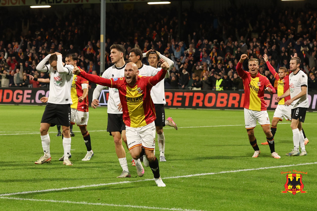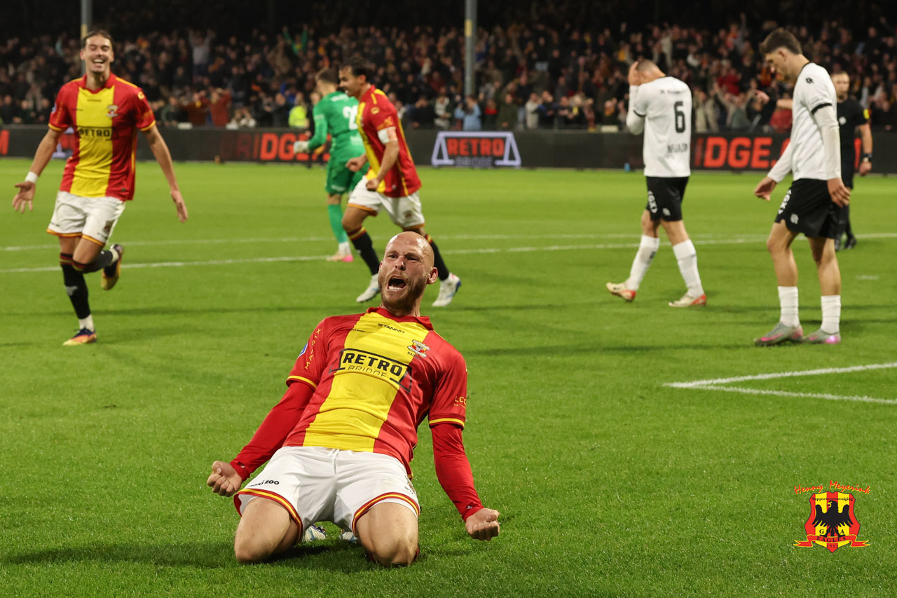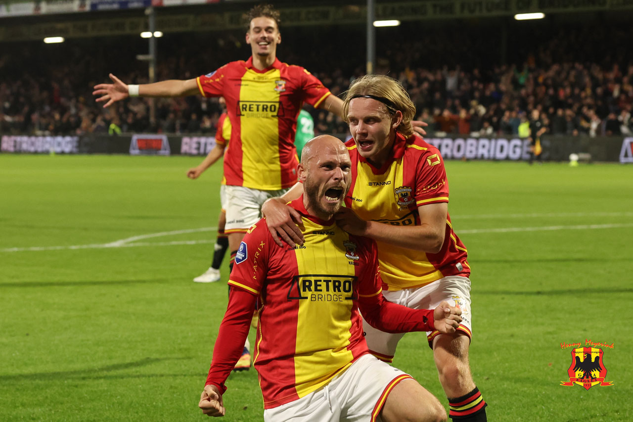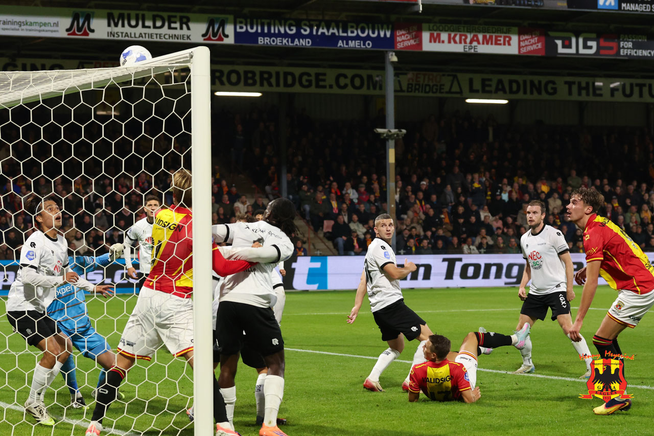 In de extra tijd ging Go Ahead vol voor de gelijkmaker, met Nauber als stormram voorop. Breum leverde een hoekschop panklaar af op het kale voorhoofd van de Duitser, die de bal bij de tweede paal hard binnenknikte: 1-1. De Adelaarshorst ontplofte en zo sleepte Kowet alsnog een verdiend punt uit het vuur.