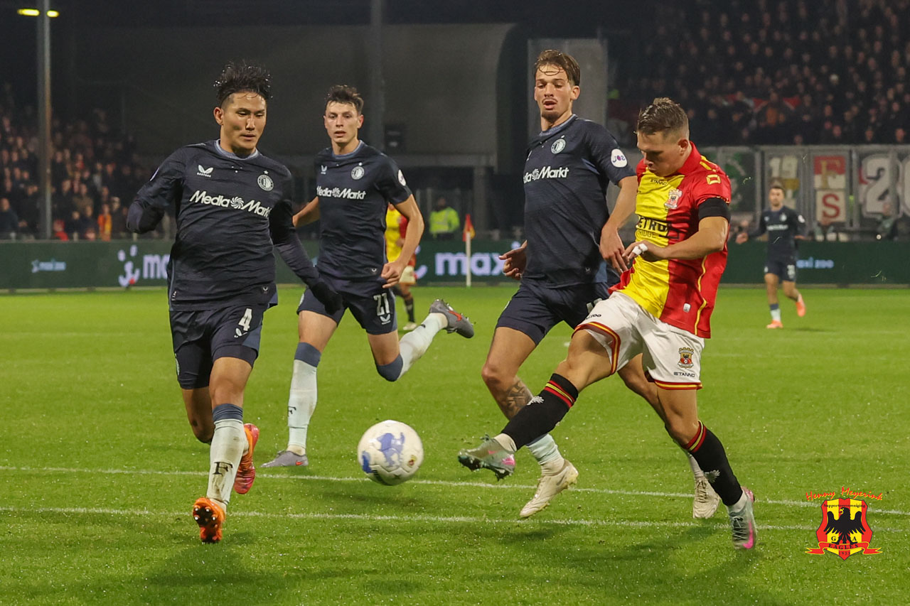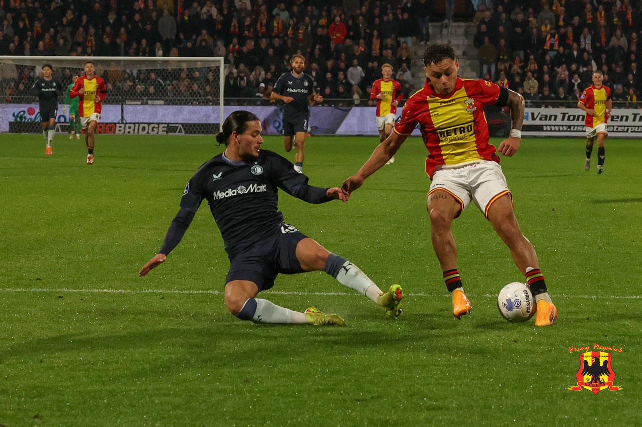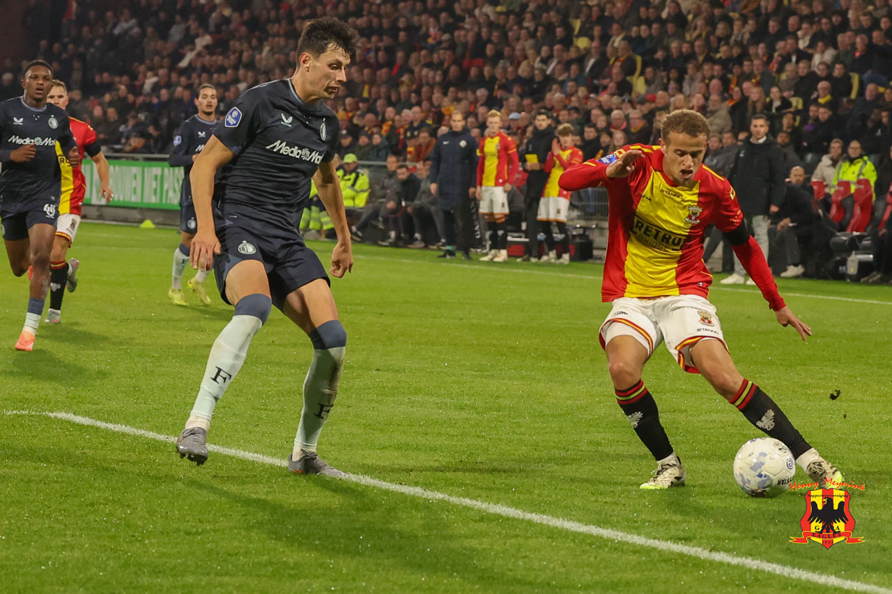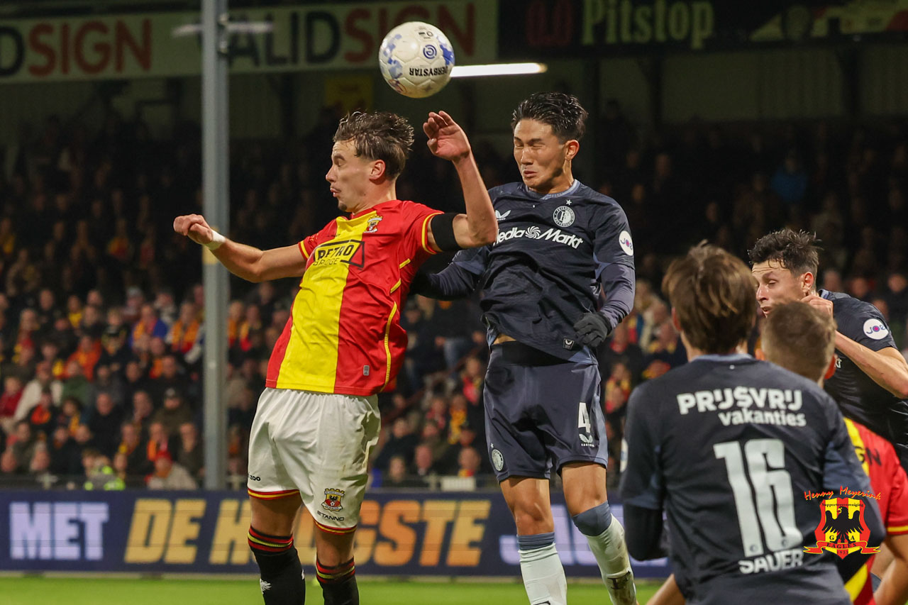 Feyenoord begon sterk aan het duel. Met veel pressie en tempo drong het de ploeg van trainer Boel ver terug. Toch was het eerste gevaarlijke moment voor Go Ahead Eagles. Na een hoekschop werd Kramer onderuitgehaald, maar de VAR zag er geen strafschop in. Uit de tegenstoot voorkwam Meulensteen dat Ueda kon binnentikken na een voorzet van Sauer.